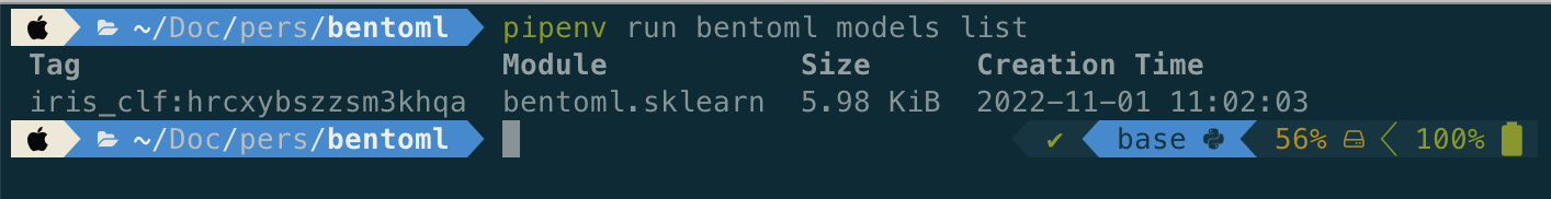 saved_model = bentoml.sklearn.save_model("iris_clf", clf)