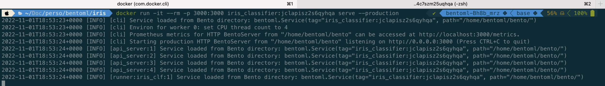 docker run -it --rm -p 3000:3000 iris_classifier:jclapisz2s6qyhqa serve --production
