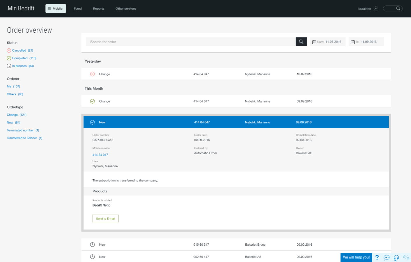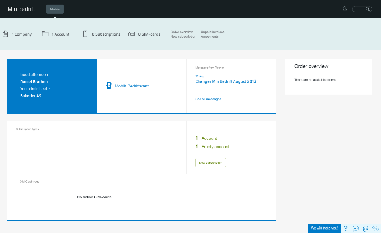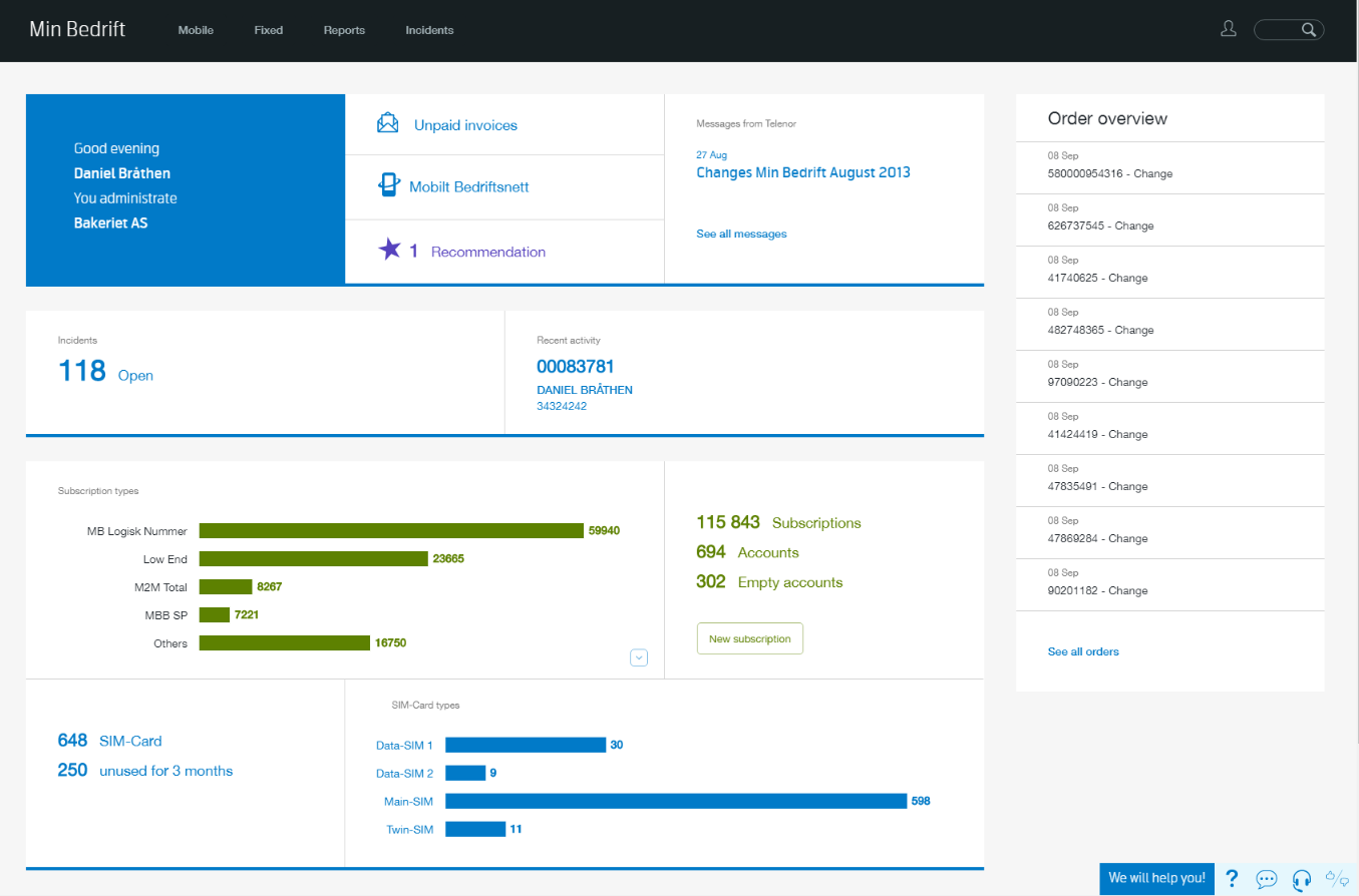 - Self-service solution for Telenor's corporate customers