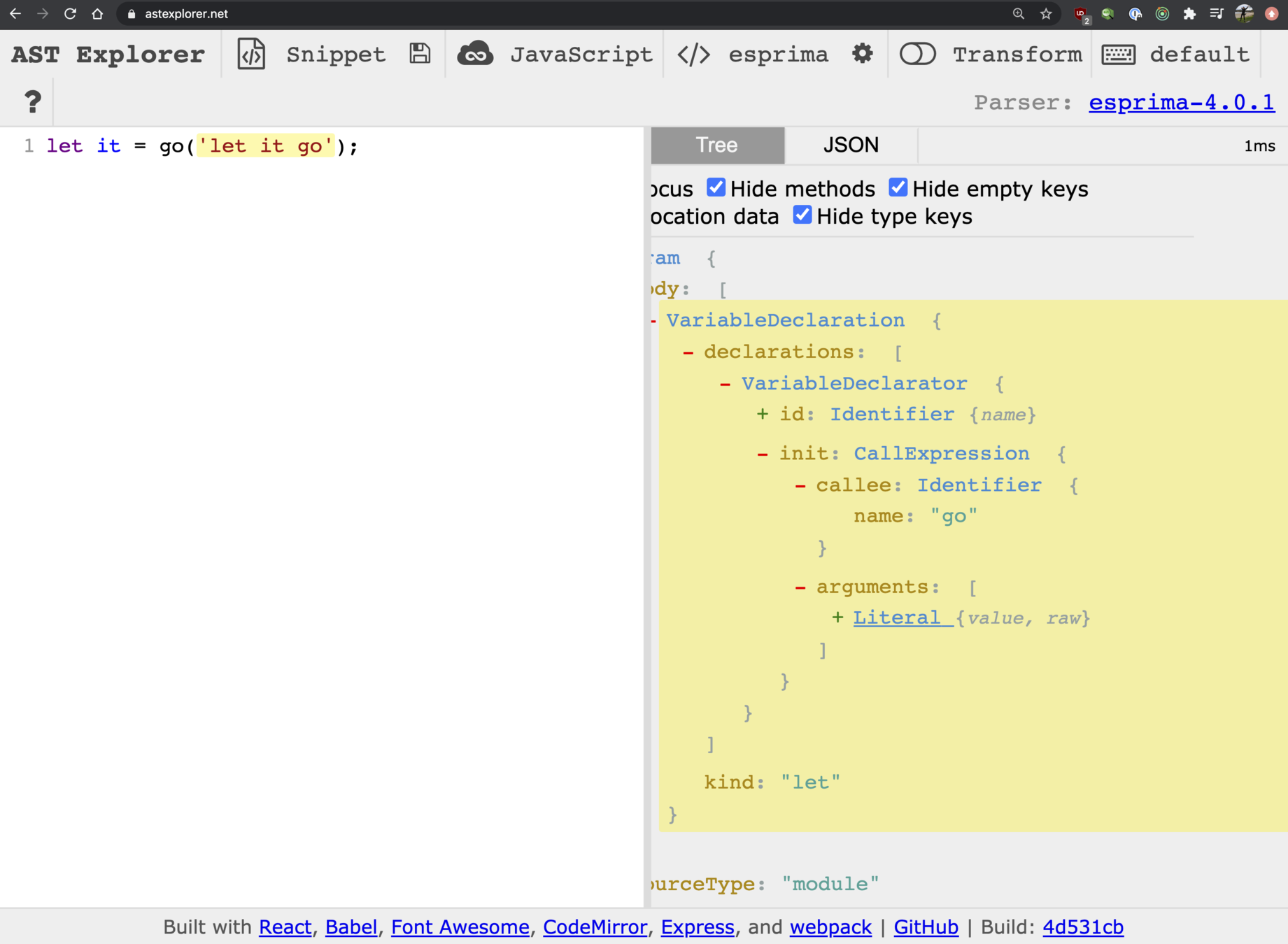 - Use ESQuery to query the AST for the "doPhysics" CallExpression