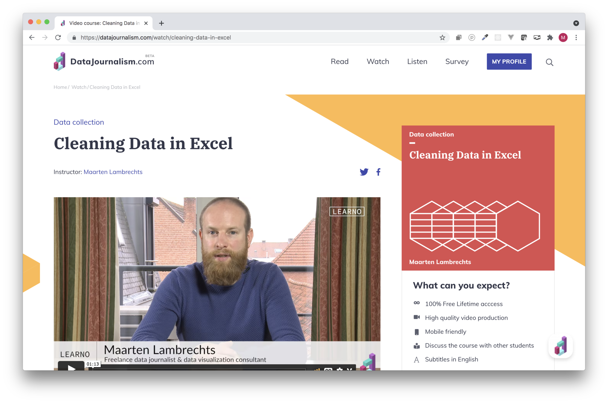 Start datajournalism.com tutorial 'Cleaning data in Excel