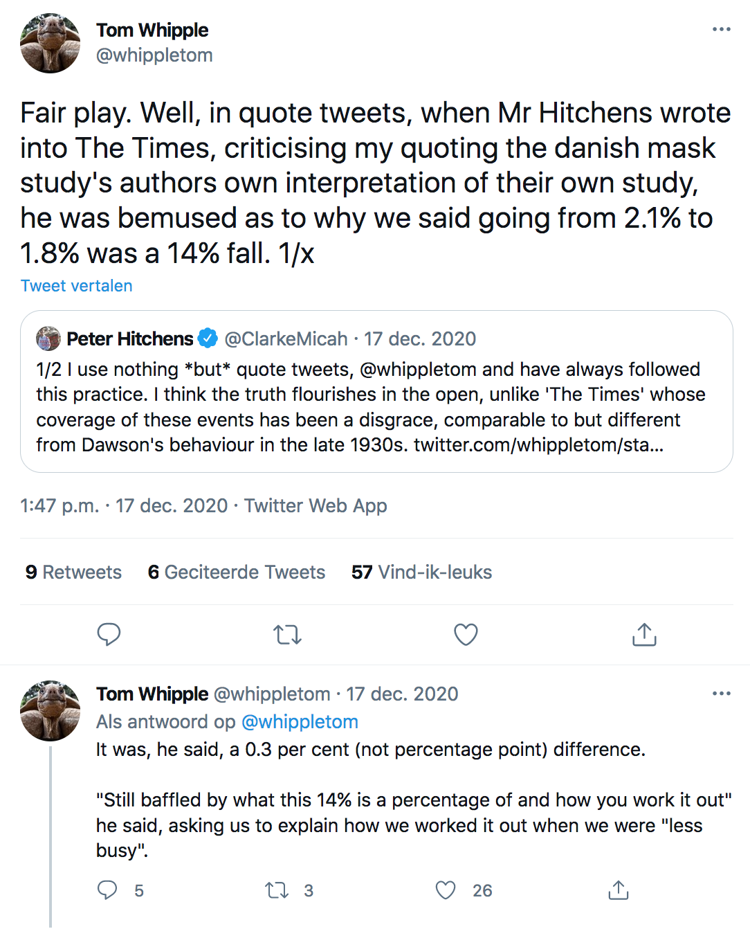 "2.1% of mask wearers tested positive for COVID-19, versus 1.8% of non-mask-wearers. The difference is only 0.3%."