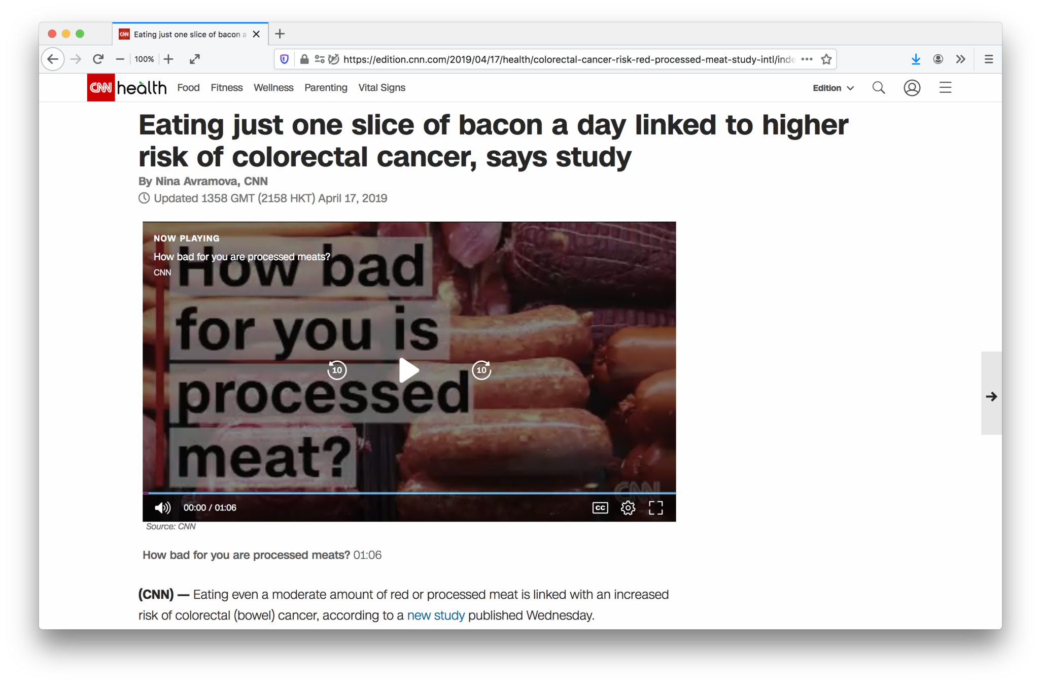 Of 10.000 people in the study who ate 21 grams of red or processed meat each day, 40 developed colorectal cancer. Among those who ate 76 gram per day, 48 did so.