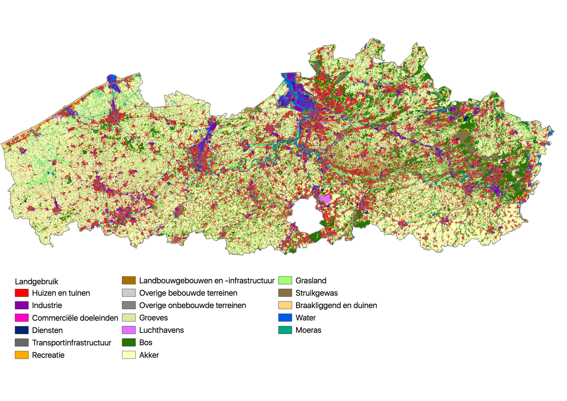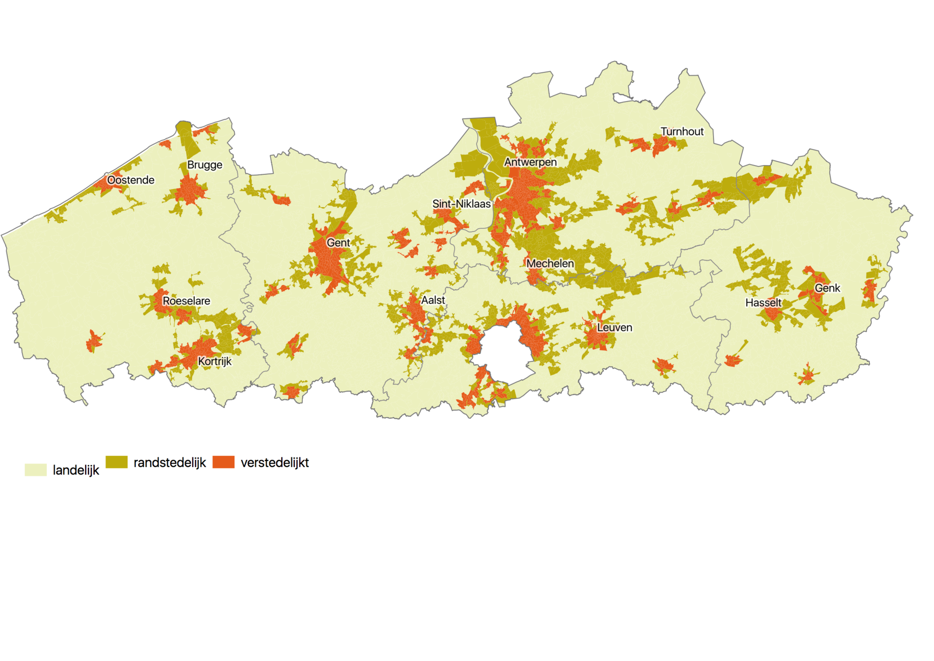 In andere delen van Vlaanderen, vaak in beleidsdocumenten weergegeven als netwerken, is een randstedelijk gebied gevormd die de verbinding maakt tussen nabijgelegen verstedelijkte gebieden