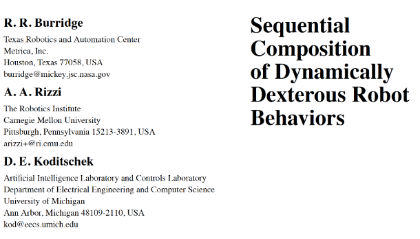 Rob Burridge, Al Rizzi, and Dan Koditschek