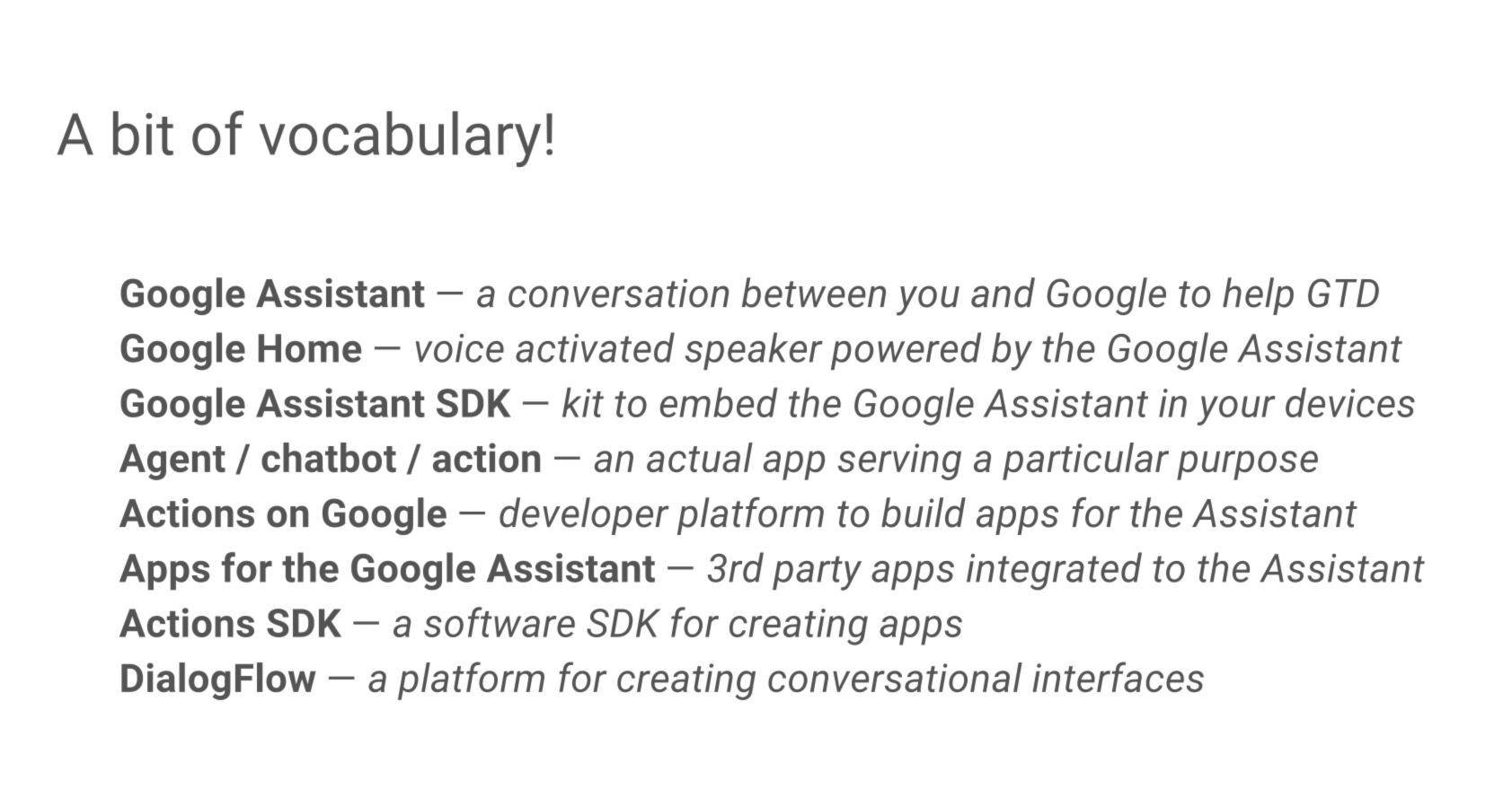 Prebuilt agents are a collection of agents developed by the Dialogflow team. In the developer console, you can download agents to your account that fit your use case and use them as a base for building a conversational interface for your app, bot, or device.